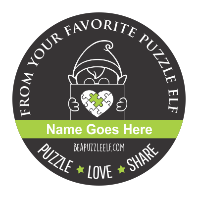 Custom Be A Puzzle Elf Decals (1.5 inches) are simple to create with your name, initials or nickname. These personalized stickers can then be adhered to either the inside or the outside of the box before you pass it along to the next person(s) or organization who will be enjoying the puzzle you are passing along.